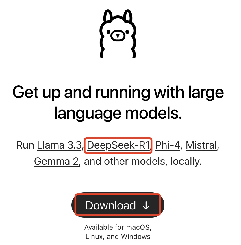 进入Ollama官方网站后,可以看到Ollama已经支持DeepSeek-R1的部署: