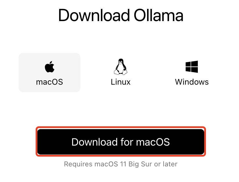 下载文件大小不到200M,文件名为:Ollama-darwin.zip