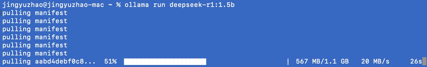 jingyuzhao@jingyuzhao-mac ~ % ollama run deepseek-r1:1.5bpulling manifest