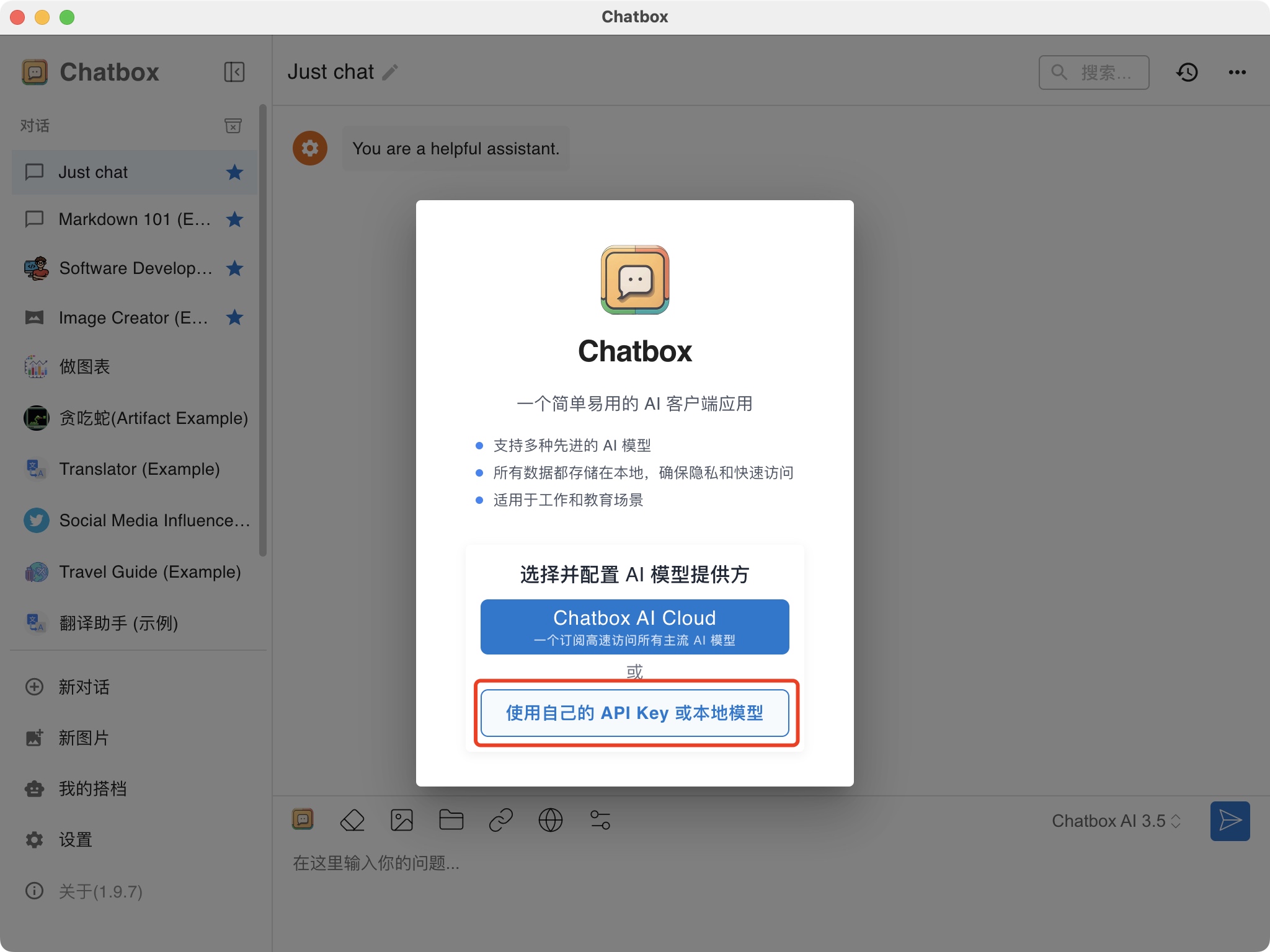 下载的Chatbox-1.9.7.dmg,大小100M多点,点击安装,按下面提示拖到Applications内: