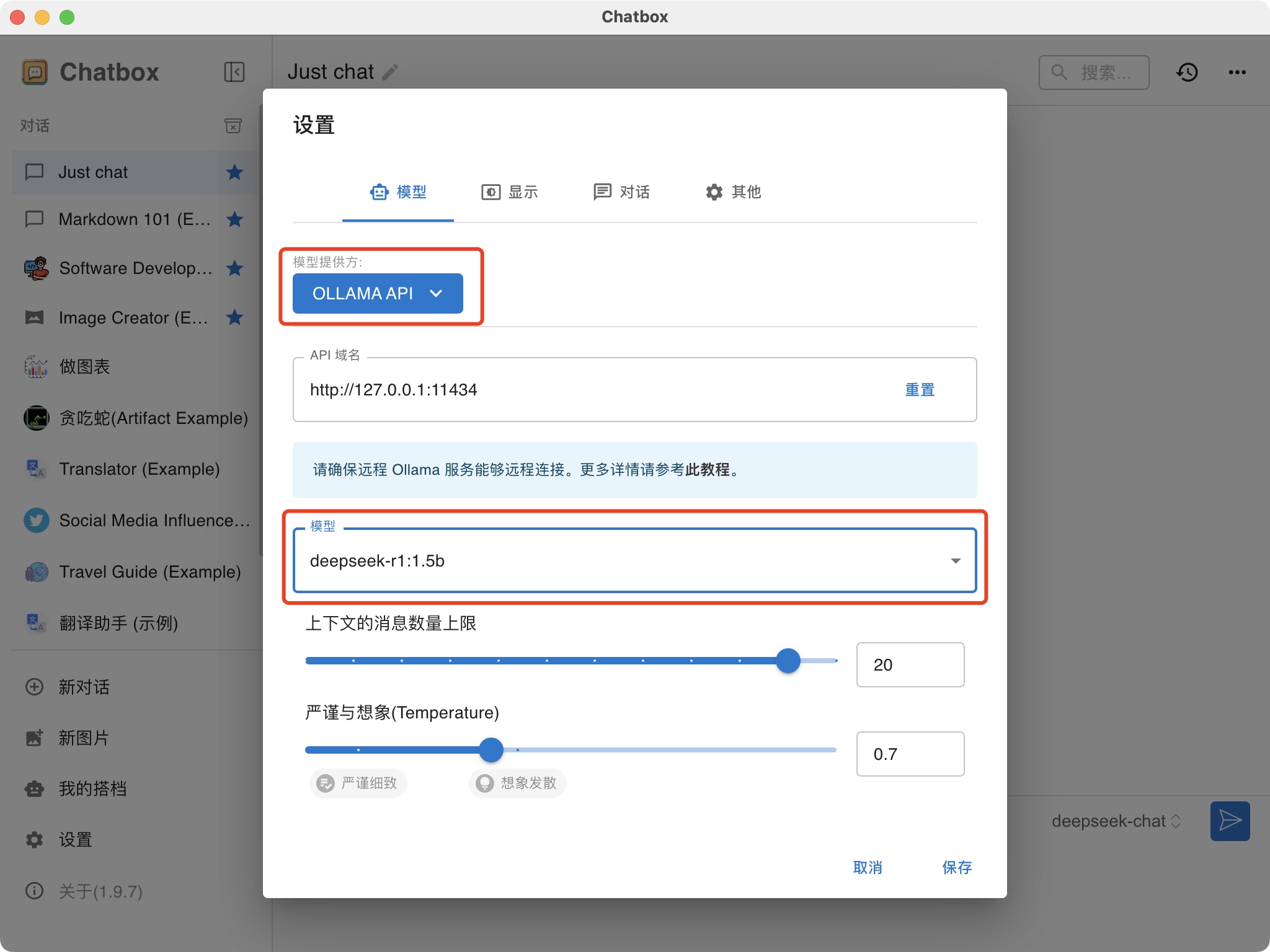 本文目标:部署 DeepSeek 本地模型,并通过 Ollama 提供 API 支持,Chatbox 提供 UI 界面。
