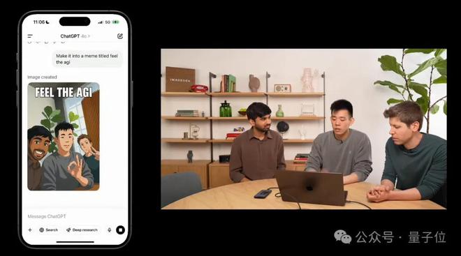 顺带官方玩梗制作 meme 图,要求在图片中添加“feel the agi”。(没错,生成时还知道将小写换成更符合的大写)