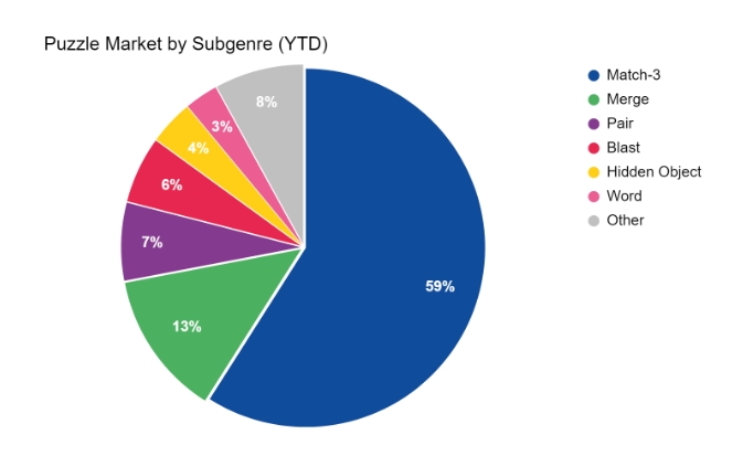 GameLook 报道/益智解谜(Puzzle)是手游市场举足轻重的赛道,每年的内购收入超过 70 亿美元。尽管市场规模巨大,但长期以来,超过一半的收入却只来自三消一个子品类。市场上的几大巨头不仅主导了三消品类,还成为合并与爆破消除等热门子品类的头部公司,这让新入场的公司很难被玩家关注到。