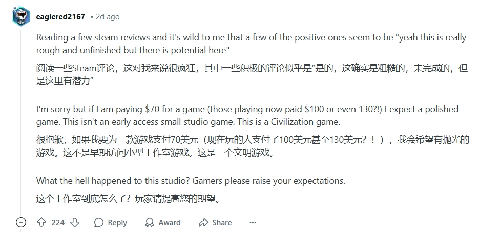 当然,也有不少玩家抱有更多信心,毕竟《文明》系列历来都有着靠 DLC“缝缝补补”的历史,如今暴露出的大多数问题也都可以通过热补丁解决。