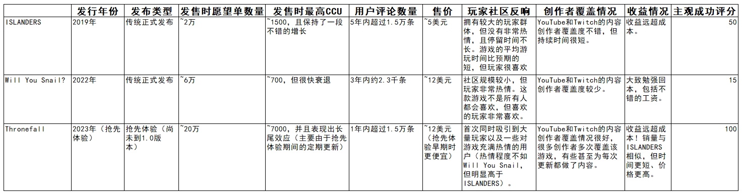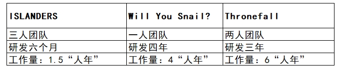 但我在想,《Will You Snail?》是独立开发的,而《ISLANDERS》和《Thronefall》是团队合作的,利润还得和其他人分成。而且《Will You Snail?》的价格比《ISLANDERS》高。那么对他个人来说,哪款游戏最赚钱呢?