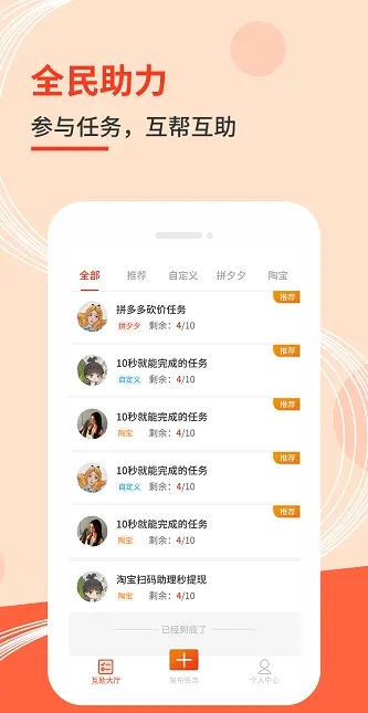 【多种任务功能】一键发布任务,任务快速展示,全部任务快速便捷完成互;