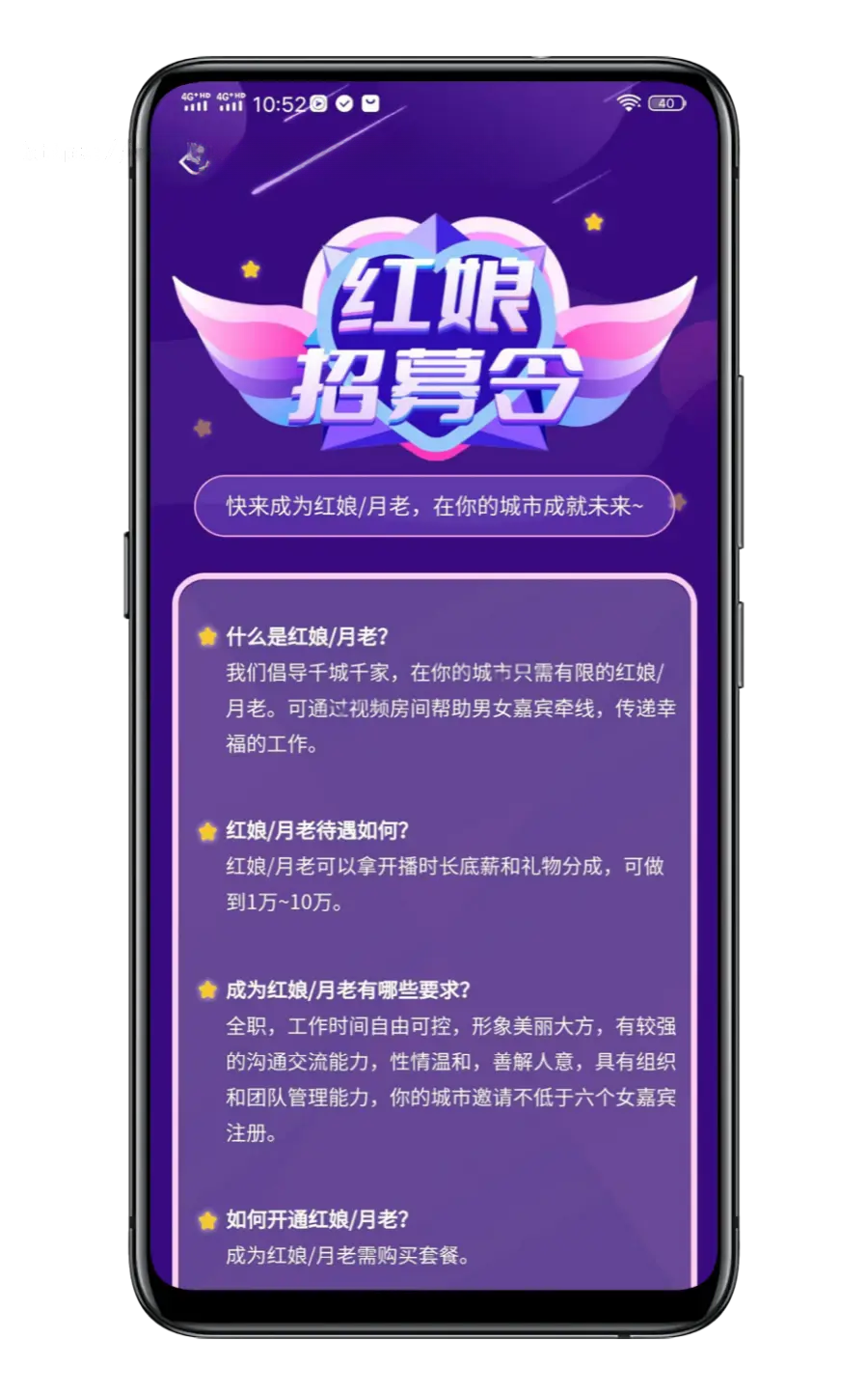 10、专属房间(由红娘开私密房间,按分钟收费,属于三人相亲房, 观众看不到)